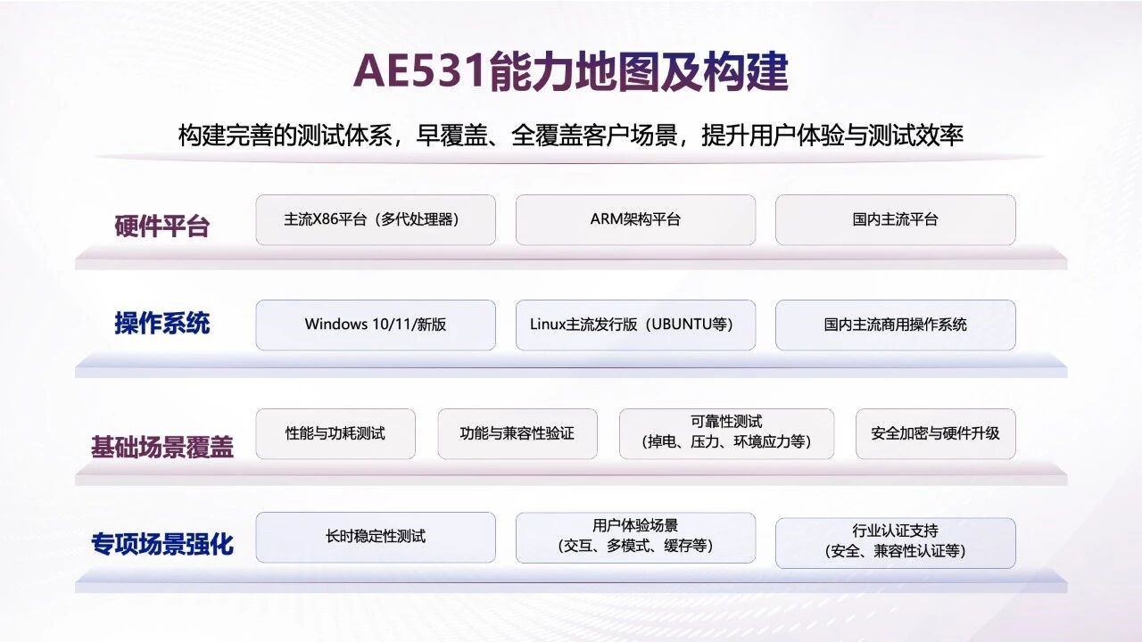AE531通过先进主控与智能功耗管理,稳定实现60℃满载且不降速的性能表现。其深度休眠功耗低于2.5mW,办公功耗不高于160mW,能效控制卓越;结合增强型日志系统,可动态优化功耗,典型场景下助力轻薄本电池损耗降低22%,续航更持久。