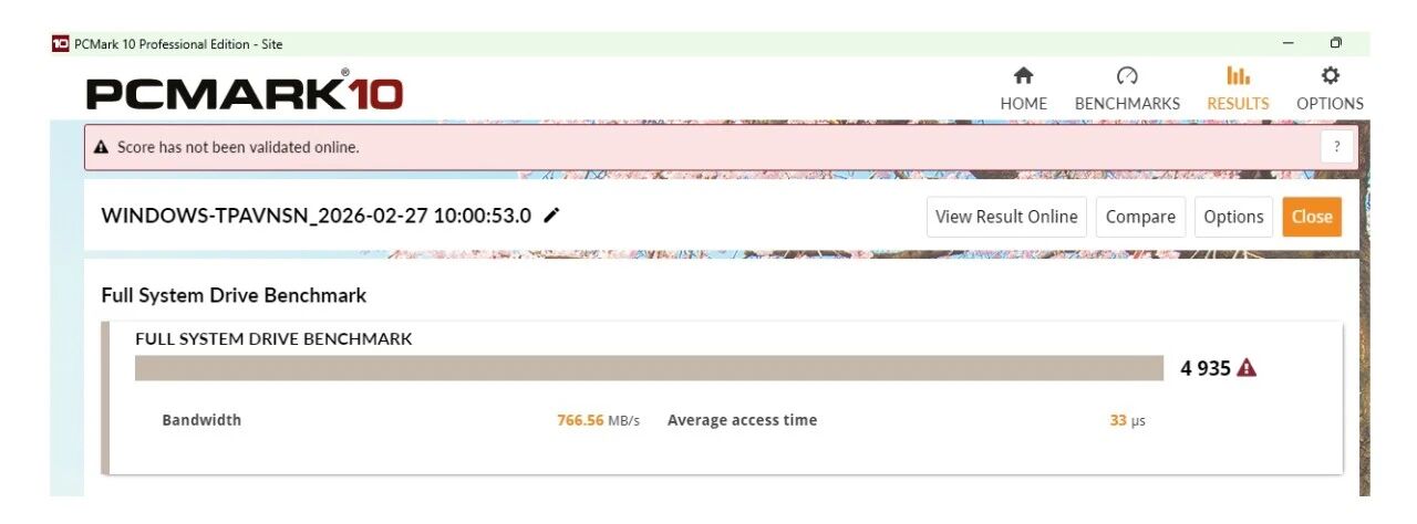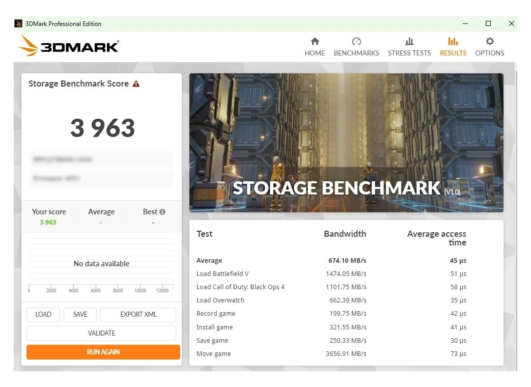 更值得一提的是,作为一款DRAMLess产品,AM6D1仍具备出色的稳态性能。3DMark测试显示,在75%填盘状态下,其读写性能保持高度稳定,波动极小,整体评分达3963分,接近空盘表现。这意味着即便长期使用、存储空间趋于饱和,用户依然可获近乎空盘的流畅体验,无需担忧掉速问题。