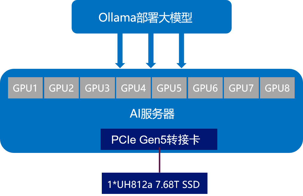结果显示,使用UH812a的Ollama加载Llama3.1:405B模型的平均耗时较竞品低47%,展现出处理超大规模文件高效调取的卓越能力。这一领先优势源于UH812a的技术底座:PCIe 5.0接口带来的超高带宽,结合自主研发主控的高效调度算法,充分释放了Ollama框架在模型加载阶段的I/O潜力。