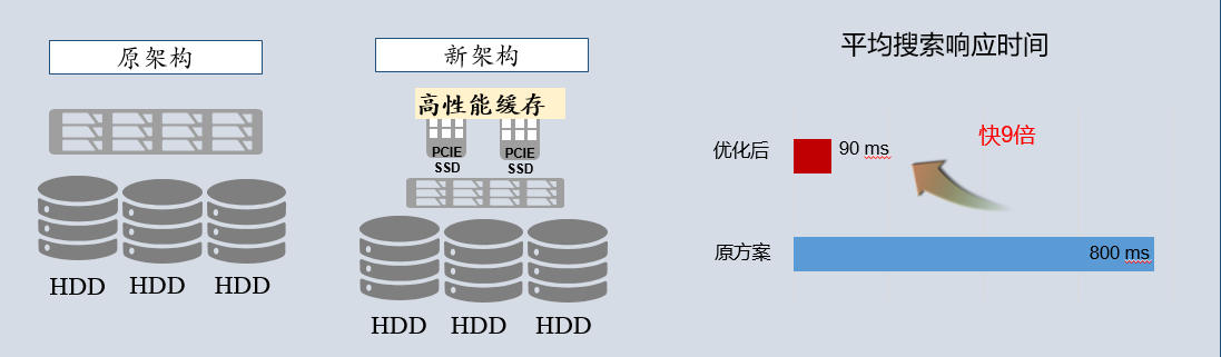 对于该电商而言,用户对于平台的使用体验影响着客流量的大小,对整体业务运转起到重要的影响,而数据搜索等待时间是用户体验的第一道门槛。采用忆联DSSD方案后,平均搜索响应时间大大减少,比原架构快了9倍左右,优化了使用体验,增强了用户粘性。