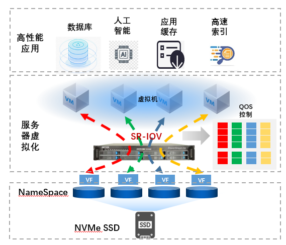 该方案中使用的SR-IOV虚拟化技术,可将SSD性能发挥到极致,且通过共享的方式实现资源充分利用,从而节约了存储及整体成本。