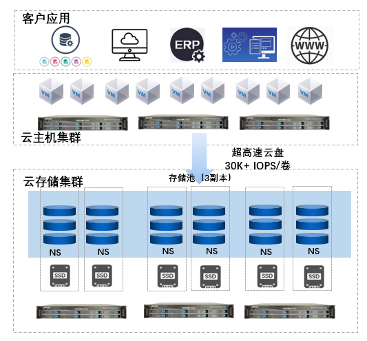 •存储池采用3副本冗余,IO密集型、带宽型业务最优同时,保障最高可靠性