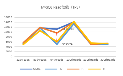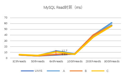 在Sysbench测试工作中配置数据表,并且设置线程从32/50/64/100/200/300进行遍历,得到的忆联SSD在MySQL 只读、只写、混合读写三个场景下的验证结果,具体如下: