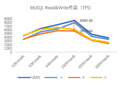 图5:MySQL混合读写场景下忆联SSD与友商性能对比
