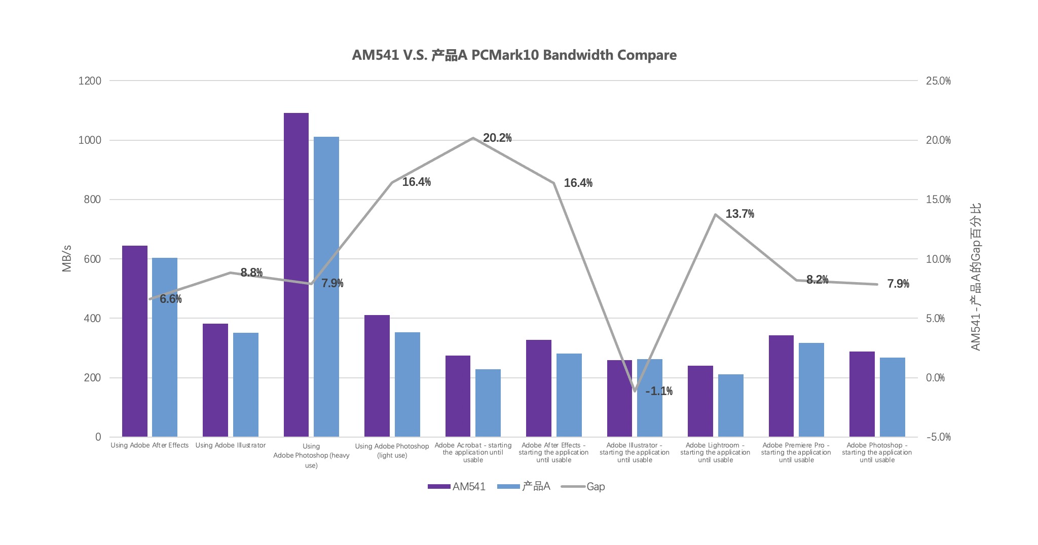依托硬件加速及先进的软件算法,AM541不仅在低QD Latency上具备优势,在多种混合读写中均有出色表现,可轻松应对多应用场景。