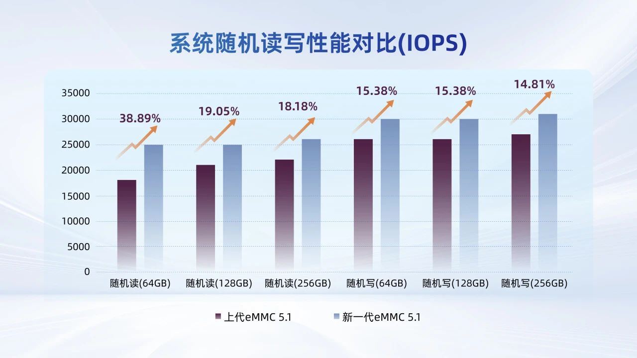 忆联新一代eMMC 5.1产品延续上代产品的高性能基因,顺序读写速度跃升至330/290 MB/s,随机读写性能达33K/30K IOPS。 其产品级与系统级性能均显著超越前代,尤其在系统随机读写性能上优势明显。同时,eMMC 5.1产品在64GB、128GB基础上,新增256GB容量版本,增容不降速,充分满足各类场景下的存储需求,避免用户因存储空间不足而频繁清理数据或更换设备,从长远来看,有效降低用户的TCO。