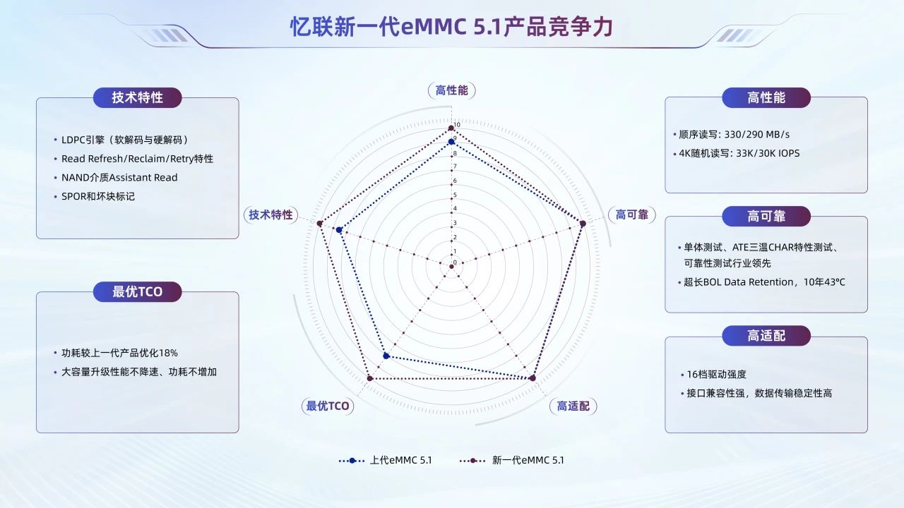 整体存储方案的TCO涉及采购、能耗、维护与更换等多方面成本。eMMC 5.1产品通过“大容量+高能效+长寿命”这一核心三角模型,显著优化了从采购到运维的全生命周期成本。