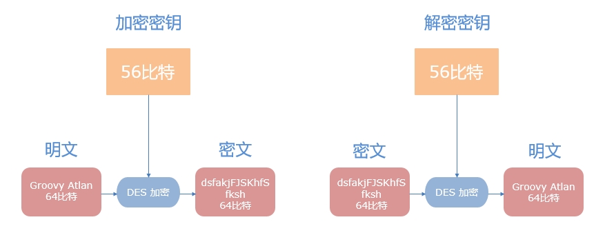 ·DES算法加密流程:整个过程就是将明文按照64比特为一组经过DES加密生成密文,同样将密文按照64比特为一组,连续多组的密文可以通过解密密钥再还原对应的明文。