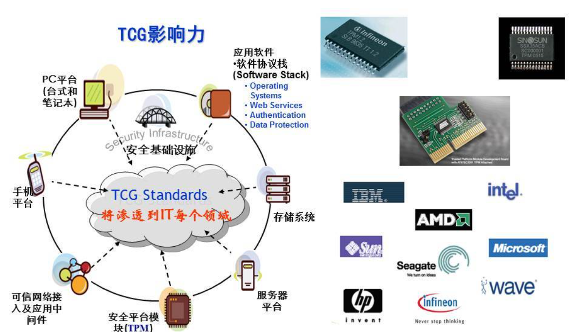 TCG(Trusted Computing Group)中文名为可信计算组织,最初是由AMD、HP、IBM、Intel、Microsoft建立,旨在建立个人电脑的可信计算概念。它不仅是一个硬盘加密方式,更是一个IT生态,融合了网络、存储、加密硬件模块、基础平台、软件等。