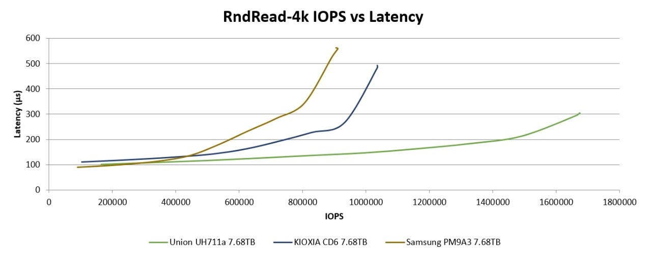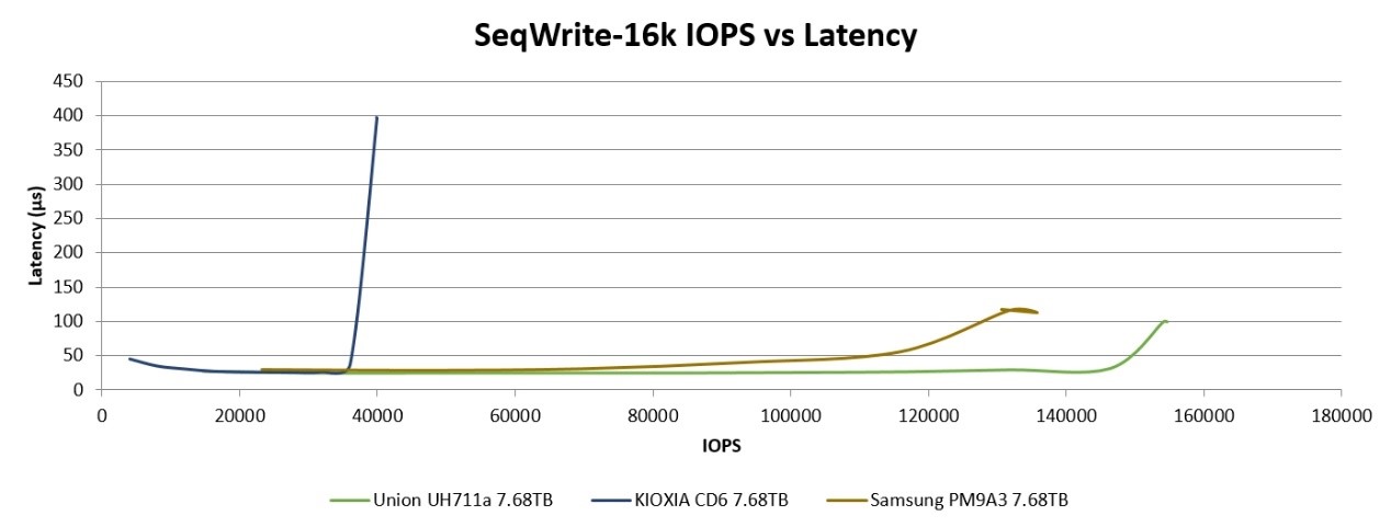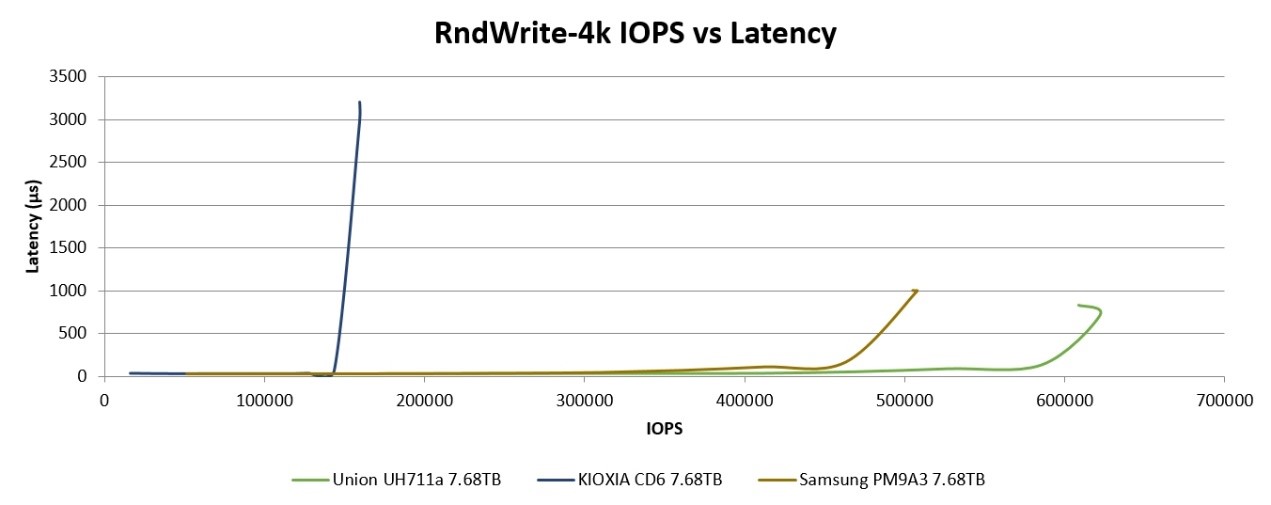 The Union Memory UH711a is a general-purpose data center SSD designed for high reliability. It often had no trouble outperforming the Samsung PM9A3 and the Kioxia CD6. The UH711a offers firmware updates that eliminate downtime and is overall a sufficient performer for mainstream workloads and applications. ——StorageReview