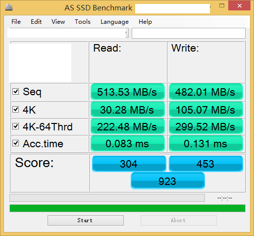 AS SSD benchmark(以下简称 AS SSD )是一款来自德国的 SSD 免费性能测试软件,涵盖持续性读写、单线程4KB随机读写、64线程4KB随机读写以及硬盘寻道时间等关键数据的测试,最后还会根据公式将成绩标准化,能比较科学的反映固态硬盘的真实性能。