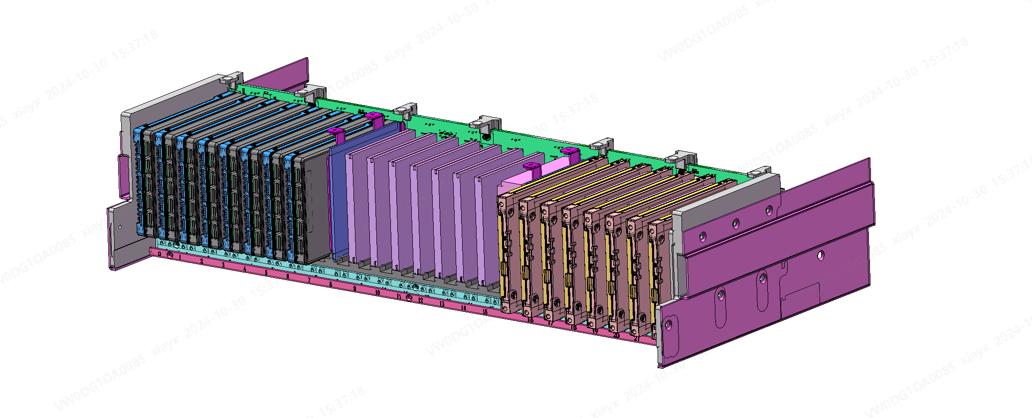 在硬件平台设计上,面对 U.2 与 E3.S 不同形态的 SSD 测试需求,忆联装备平台团队基于 U.2 硬件平台,自主设计 E3.S 硬盘背板连接器,并对夹具的 SSD 插槽导轨尺寸、形状和连接方式进行精确设计,确保夹具接口能灵活适配 U.2 和 E3.S 的连接器,满足不同规格的物理和电气要求。通过这一创新设计,天工平台实现 U.2 与 E3.S 双形态的兼容集成测试,为用户提供更灵活的交付选择。