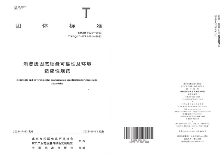 近日,由北京市闪联信息产业协会联合忆联、联想等多家企业共同制定的团体标准——《消费级固态硬盘可靠性及环境适应性规范》(以下简称:《规范》)正式由中国标准出版社出版发行。该《规范》明确了消费级固态硬盘在产品寿命、极端环境适应性及电磁兼容性等方面的可靠性技术要求。此次发行标志着该团体标准全面进入实施阶段,将有力推动消费级存储行业整体可靠性水平的提升。